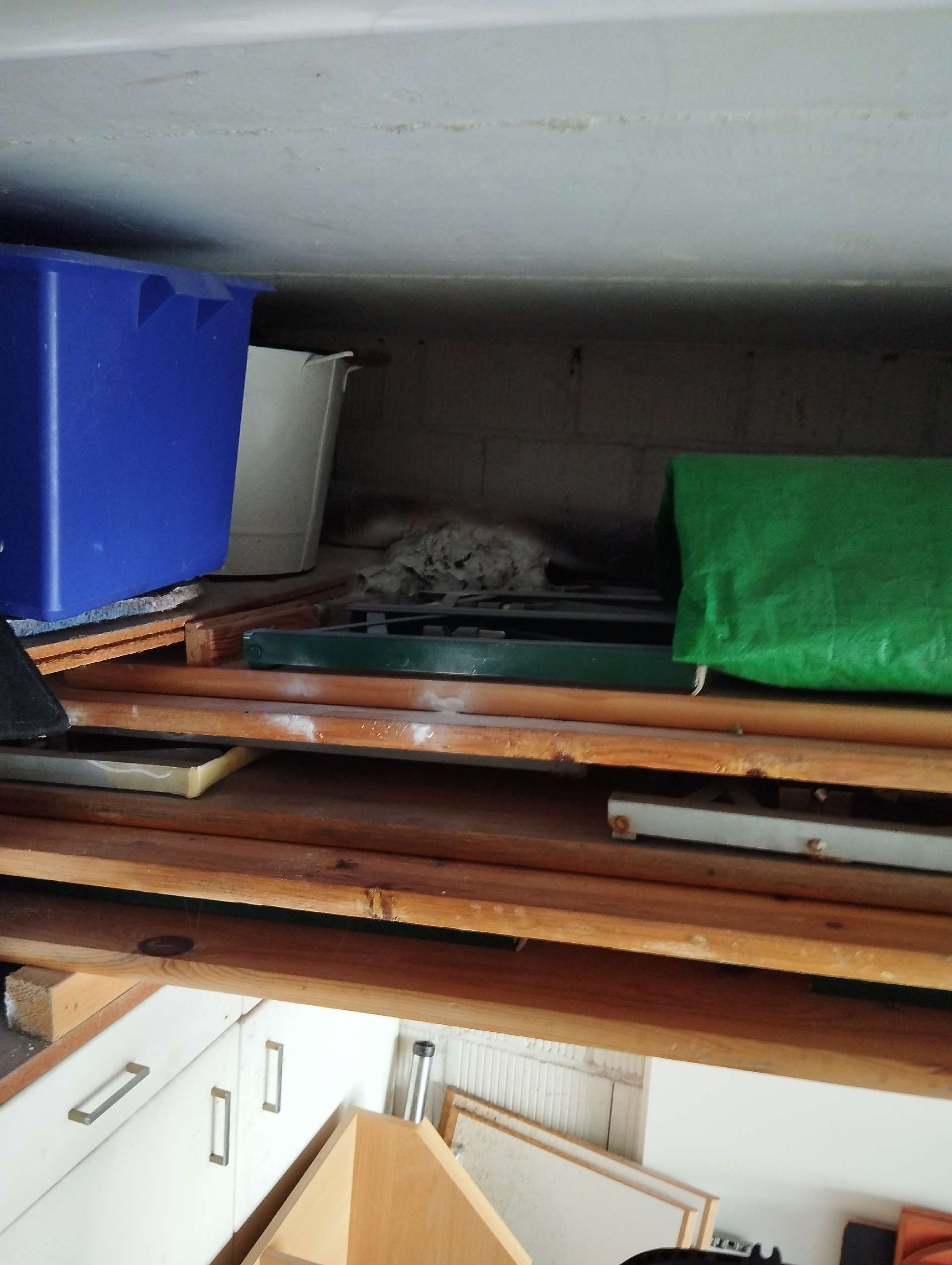 | Lieu: | Des endroits abrités de la pluie autour de la maison, des cabanes de jardin, des hangars - parfois dans le sol. |
